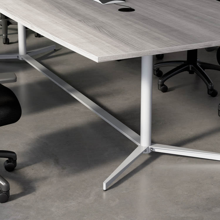 The long office table's sturdy metal base includes adjustable levelers for maximum stability on any surface.