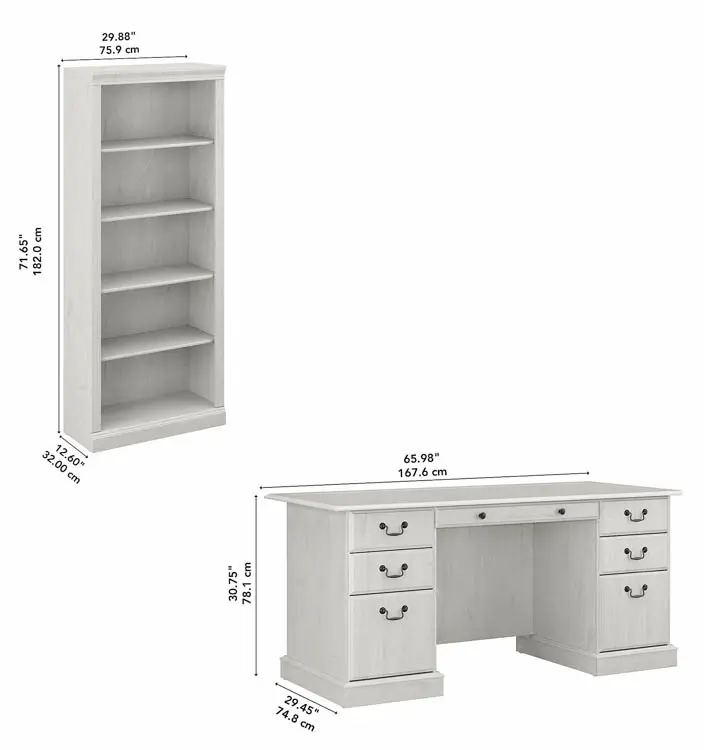 • Bundle includes: Executive Desk with Drawers, Tall 5 Shelf Bookcase (set of 2)
