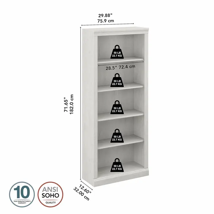The Bush Furniture Saratoga 5 Shelf Bookcase offers luxurious looks at a lasting value.