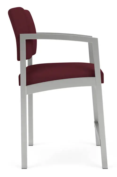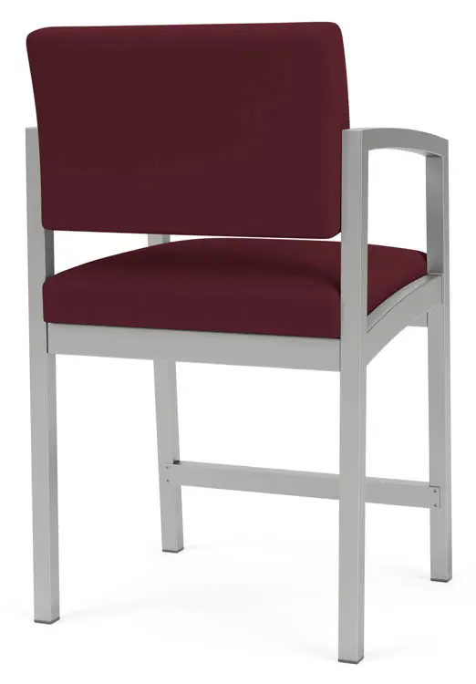 The Lenox Steel hip chair with its graceful transitional styling, gently sloped arm design, and upholstered seat and back cushions will give your space a light, airy look.