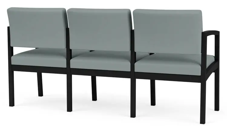 The Lenox Steel 3 seat sofa with center arms has graceful transitional styling and upholstered seat and back cushions will give your space a light, airy look.