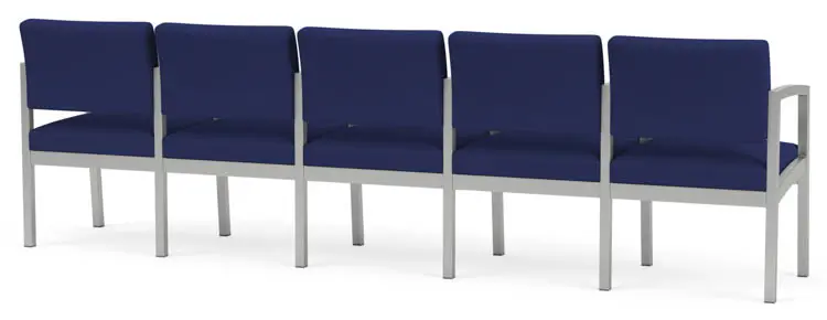 The Lenox Steel 5 seat sofa with center arms has graceful transitional styling and upholstered seat and back cushions will give your space a light, airy look.