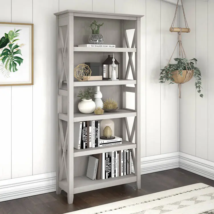The Bush Furniture Key West Tall 5 Shelf Bookcase is a perfect way to show off your favorite artwork, photos, plants and more.