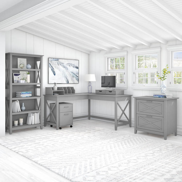 With its practical design and easy going style, the Bush Furniture Key West 60"W L-Shaped Desk offers an ideal workspace solution for home offices.