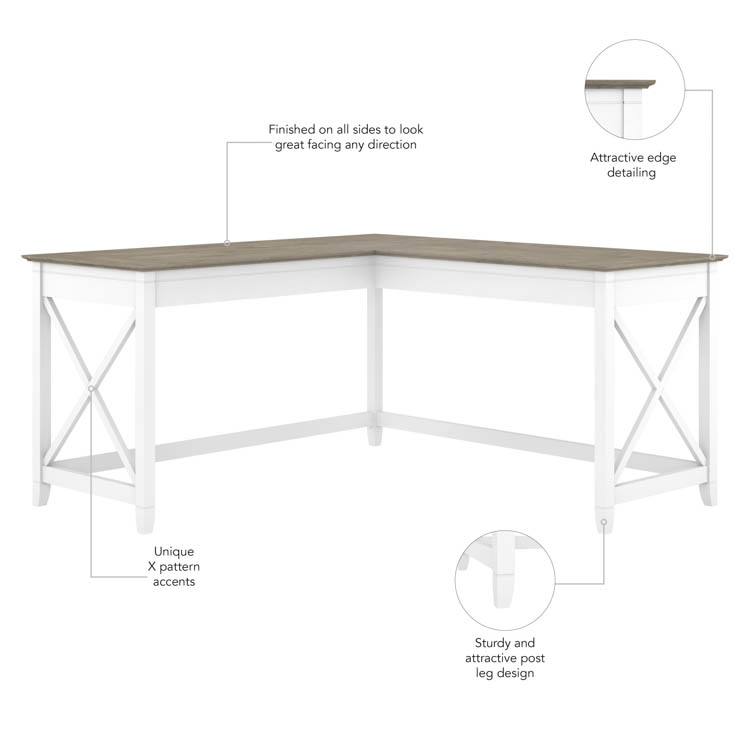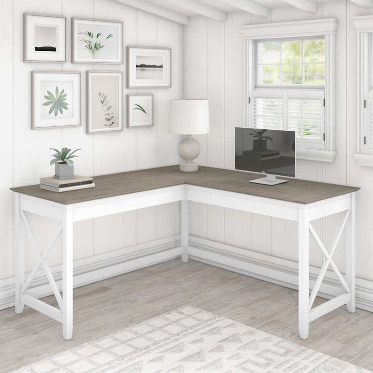 With its practical design and easy going style, the Bush Furniture Key West 60"W L-Shaped Desk offers an ideal workspace solution for home offices.
