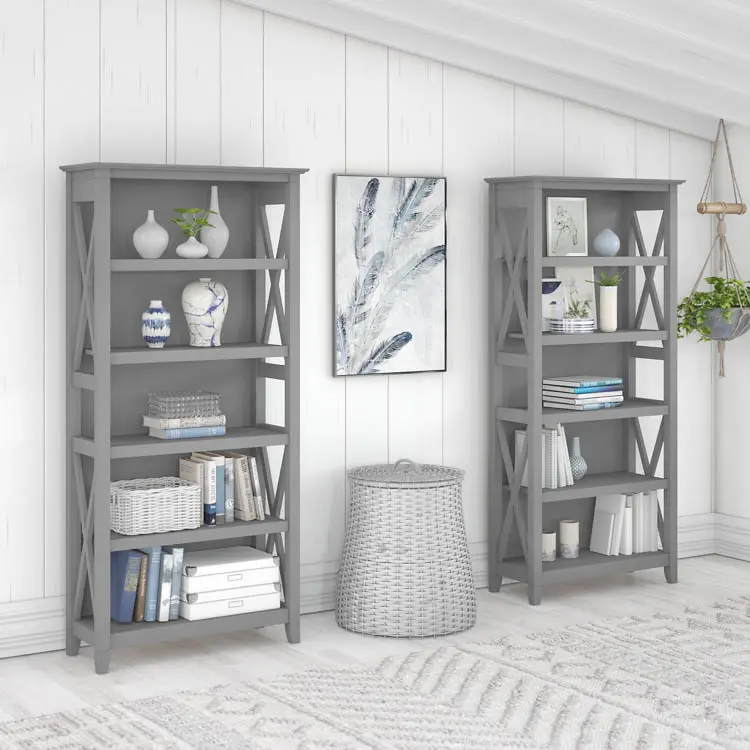 The Bush Furniture Key West Tall 5 Shelf Bookcase Set is a perfect way to show off your favorite artwork, photos, plants and more.