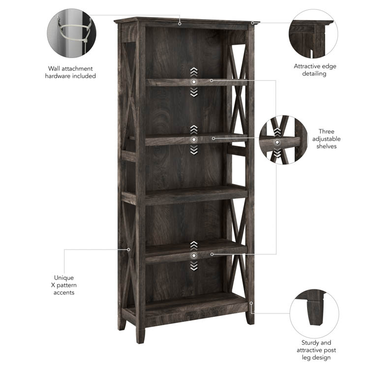 The Bush Furniture Key West Tall 5 Shelf Bookcase Set is a perfect way to show off your favorite artwork, photos, plants and more.