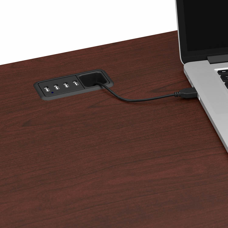 • Corner desk surface includes built-in wire management and 4-port USB hub for connecting electronic devices