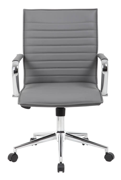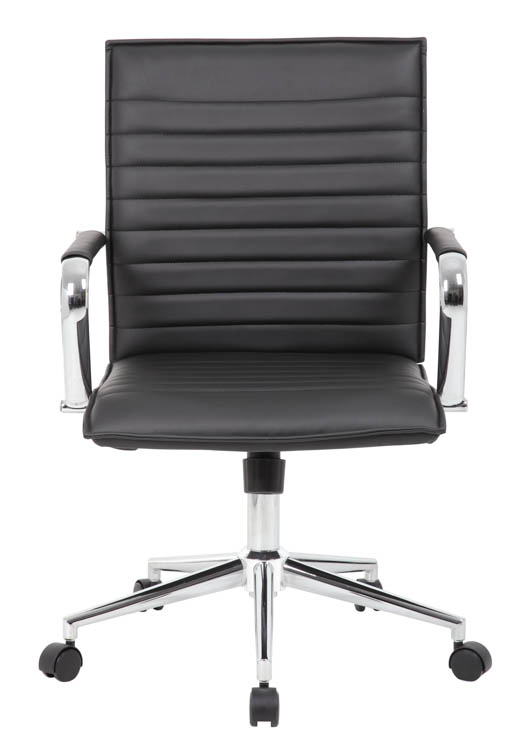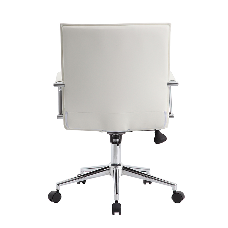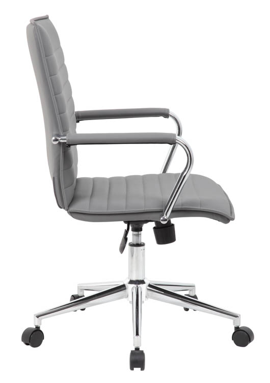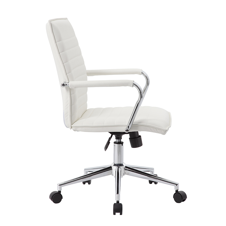 This task chair in vinyl is designed with fixed chrome arms for that pop of metallic color that brings any room or office to the next level.