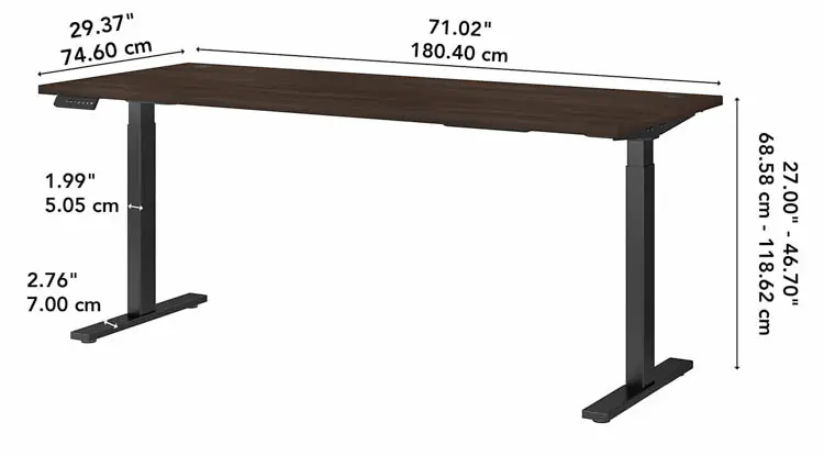 The electric adjustable height Desk includes a 10' power cord and smoothly lifts from a low of 27" to a high of 46.7" at the push of a button.
