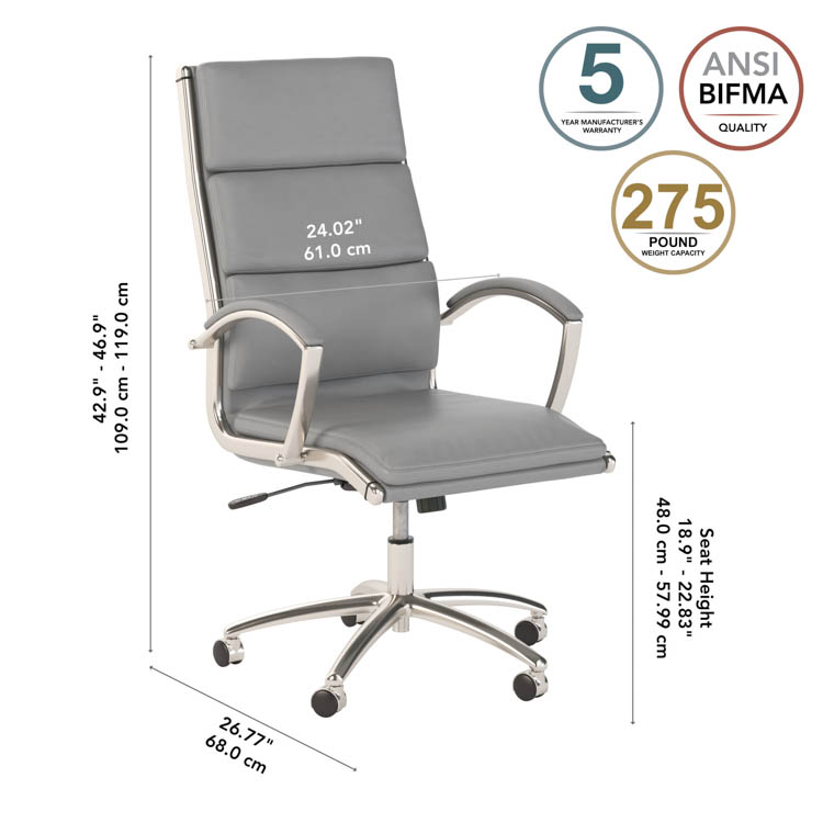 The commercial-grade High Back Leather Executive Office Chair is tested to meet ANSI/BIFMA standards for safety and performance.