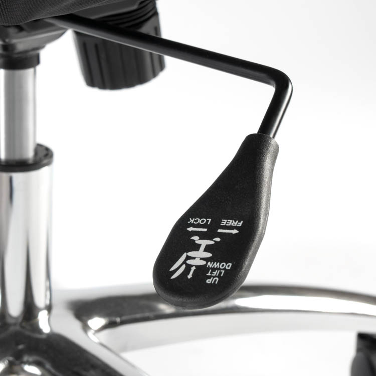 A convenient lever instantly adjusts the seat's height to individual preference and can be used to lock the tilt function so the chair remains fixed in an upright position.