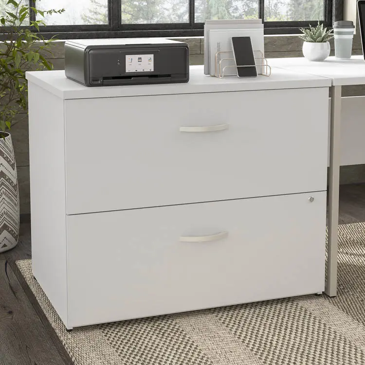 The Bush Business Furniture Hybrid 2 Drawer Lateral File Cabinet offers a stylish, long-lasting storage solution for the modern professional.