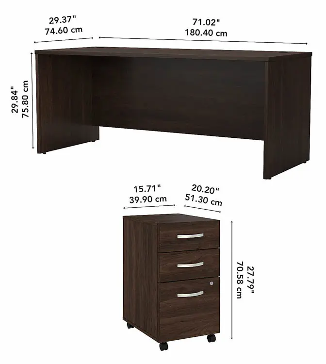 Desk Dimensions: 71.02" W x  29.37" D x 29.84" H.