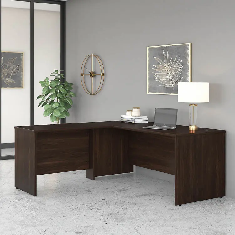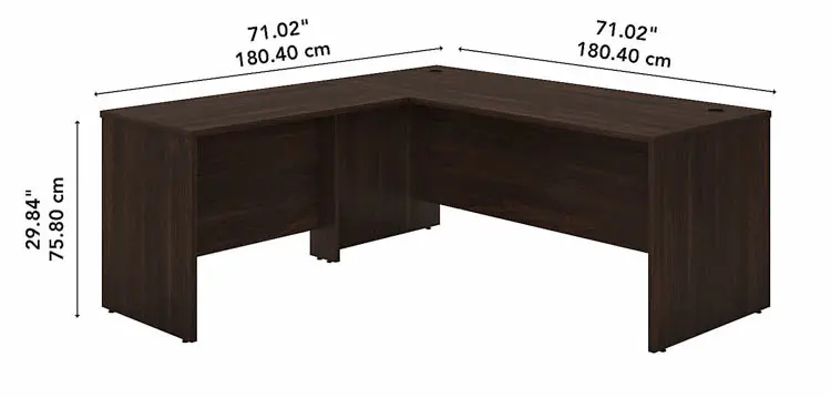 • Durable thermally fused laminate surface and sturdy end panels protect the Corner Desk from scratches, stains, dings and dents