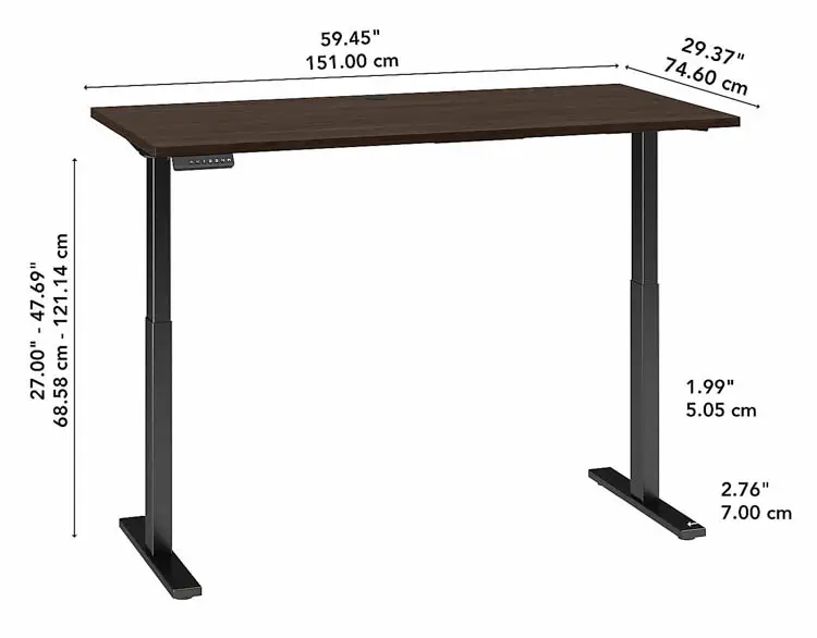 The electric adjustable height Desk includes a 10' power cord and smoothly lifts from a low of 27" to a high of 46.7" at the push of a button.
