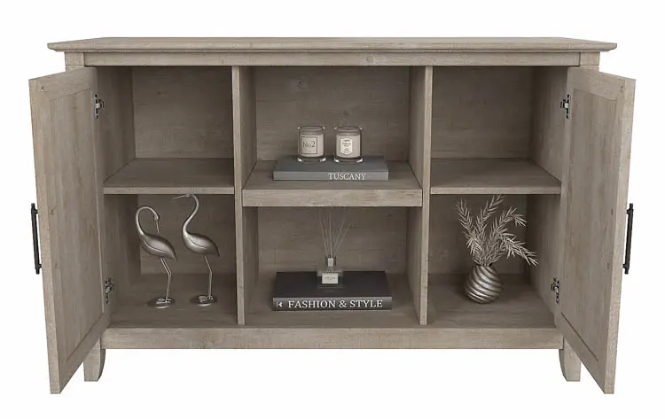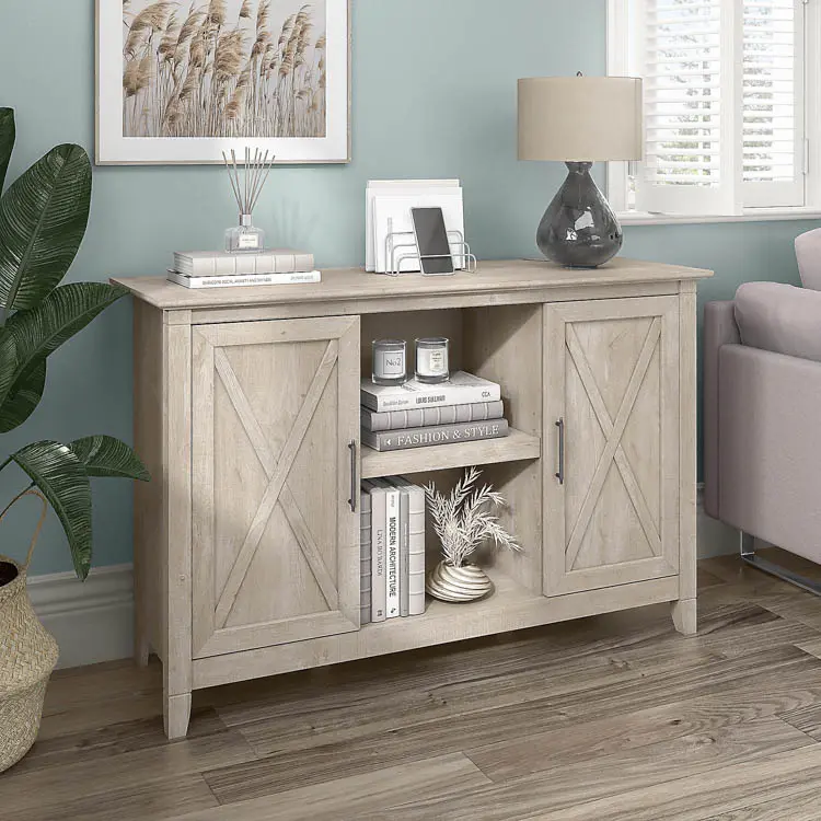 This console table with shelves and doors has been rigorously tested to meet Bush Furniture's quality standards for safety, durability and performance.