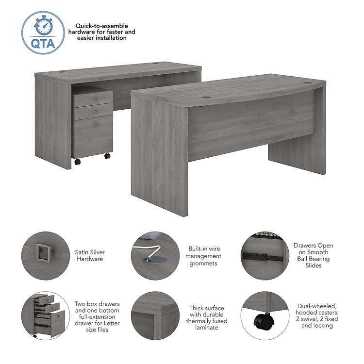 Bow Front Desk and Credenza with Mobile File Cabinet by Bush Furniture