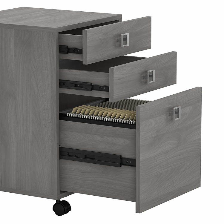 • Cabinet contains 2 box drawers and a full-extension file drawer for letter-size files
