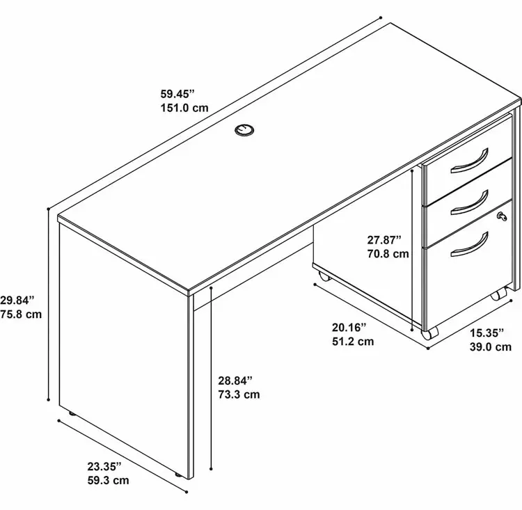 A locking full-extension file drawer accepts your letter, legal and A4 documents for a tidy workspace.