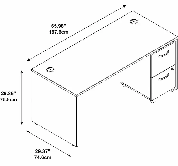 Desk Dimensions: 65.98"W x 29.37"D x 29.80"H.
