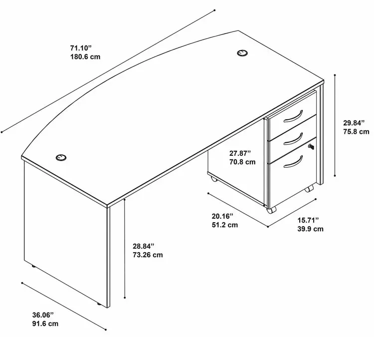 Desk Dimensions: 71.10"W x 36.06"D x 29.84"H.