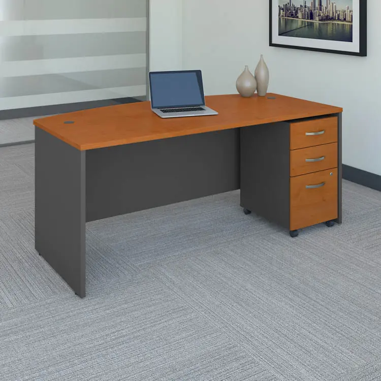 • Bundle Includes: 72"W Bow Front Desk and Assembled 3 Drawer Mobile File Cabinet