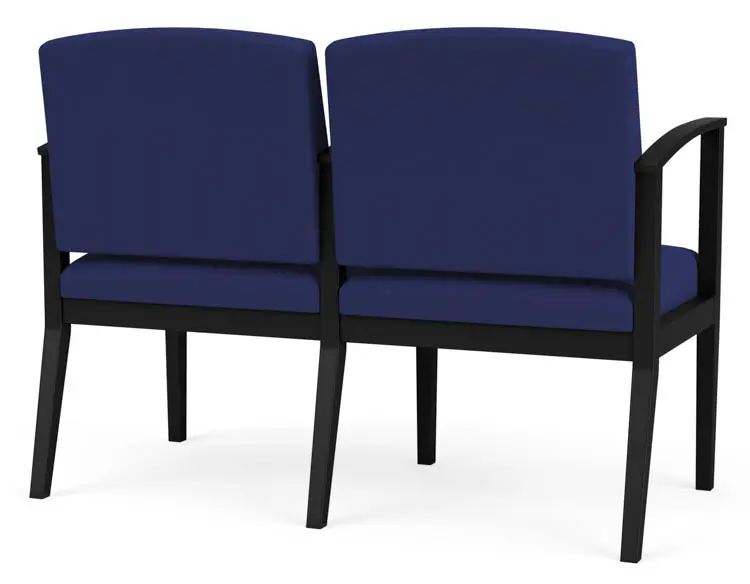 The Amherst Steel 2 seater with center arm with its elegant yet uncomplicated styling, gently sloped arm design, and upholstered seat and back cushions will give your space a light, airy look.