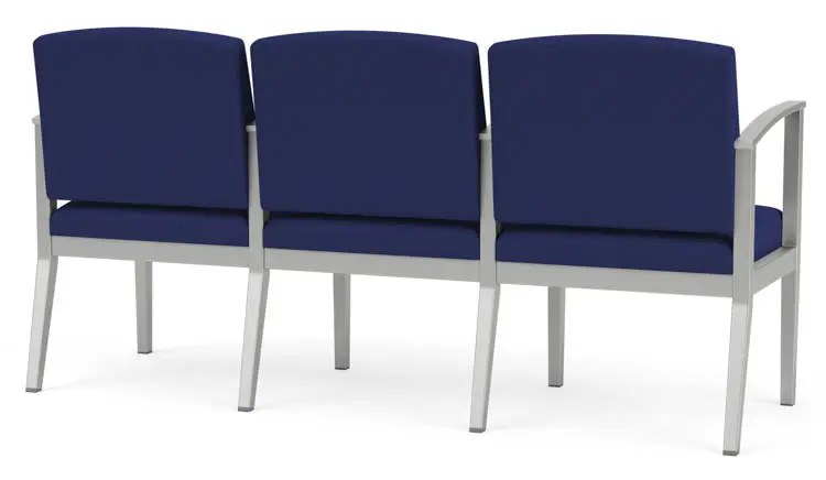 The Amherst Steel 3 seater with center arm with its elegant yet uncomplicated styling, gently sloped arm design, and upholstered seat and back cushions will give your space a light, airy look.