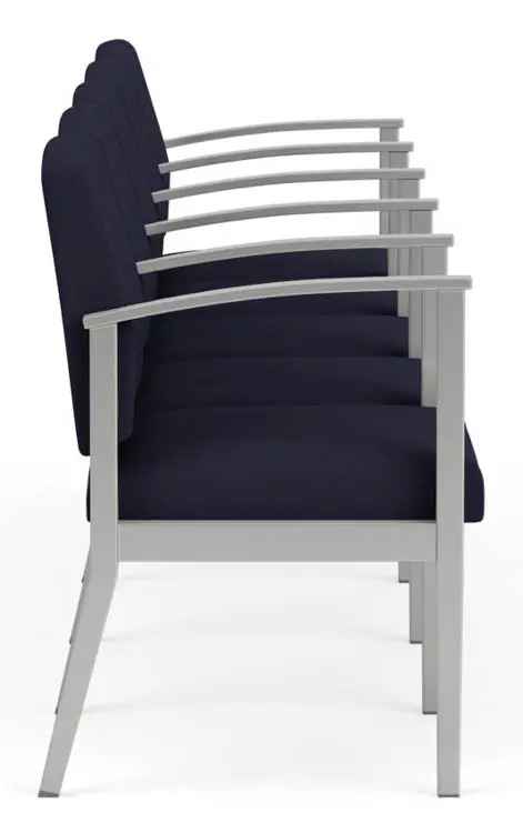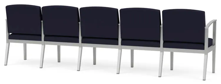 The Amherst Steel 5 seater with center arm with its elegant yet uncomplicated styling, gently sloped arm design, and upholstered seat and back cushions will give your space a light, airy look.
