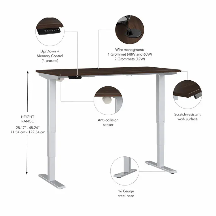 • Electric Height Adjustable Standing Desk includes a motorized base and 48" W x 24" D top surface with built-in wire management