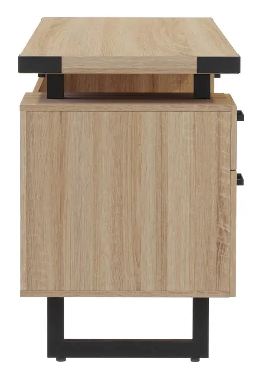 • Complete with double pedestals featuring one with three storage-sized drawers and one with a storage drawer and a file drawer accentuated with discrete brackets giving the appearance of a floating workstation