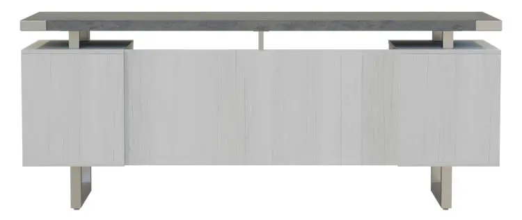 Mirella™ Free Standing Credenza features a contemporary design that provides a residential look, Sand Dune and Southern Tobacco laminates come with Black hardware, and White Ash and Stone Gray laminates come with Silver hardware.