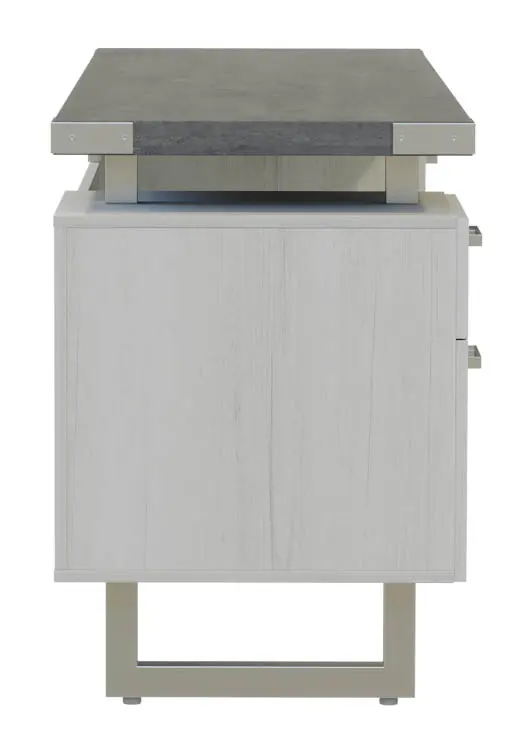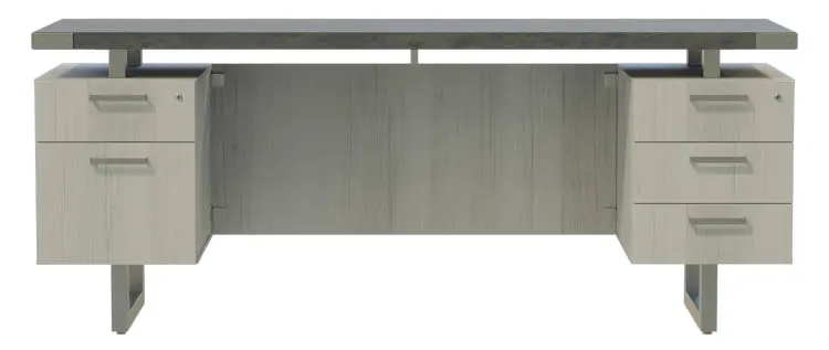 • Complete with double pedestals featuring one with three storage-sized drawers and one with a storage drawer and a file drawer accentuated with discrete brackets giving the appearance of a floating workstation