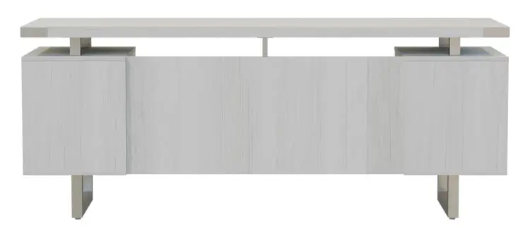 Mirella™ Free Standing Credenza features a contemporary design that provides a residential look, Sand Dune and Southern Tobacco laminates come with Black hardware, and White Ash and Stone Gray laminates come with Silver hardware.
