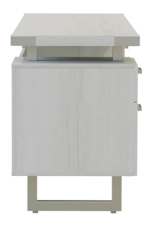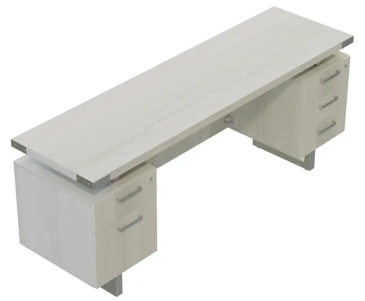 • Complete with double pedestals featuring one with three storage-sized drawers and one with a storage drawer and a file drawer accentuated with discrete brackets giving the appearance of a floating workstation