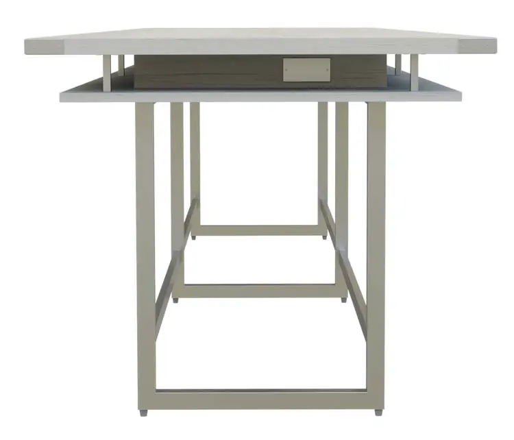 Mirella™ Conference Table, Standing-Height, 16’ features a contemporary design that provides a residential look. Sand Dune and Southern Tobacco laminates come with Black hardware, and White Ash and Stone Gray laminates come with Silver.