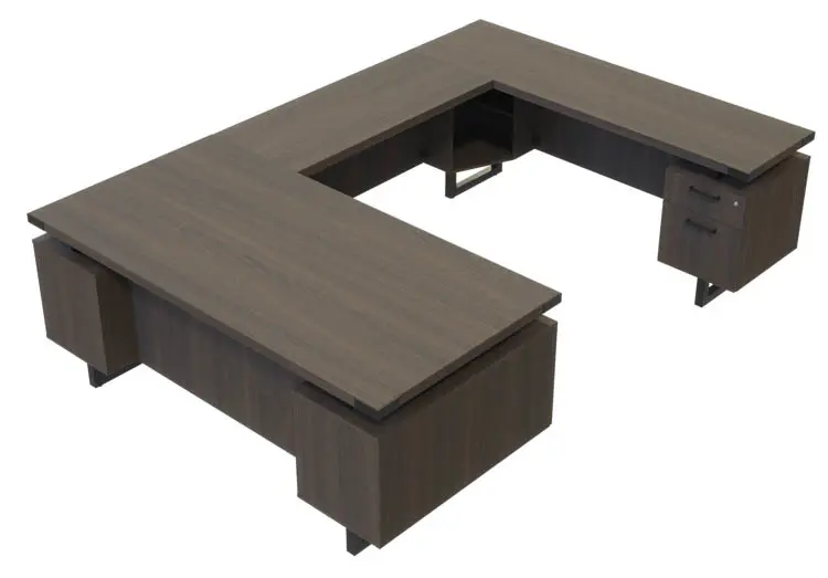 • Set includes Desk, universal Bridge, Credenza and two Pedestals