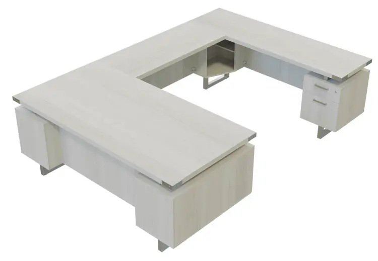 • Set includes Desk, universal Bridge, Credenza and two Pedestals