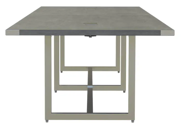 Mirella™ Conference Table, Sitting-Height, 12’ features a contemporary design that provides a residential look, complemented with Brushed-Silver or Black Powder Coat accents and finishes.