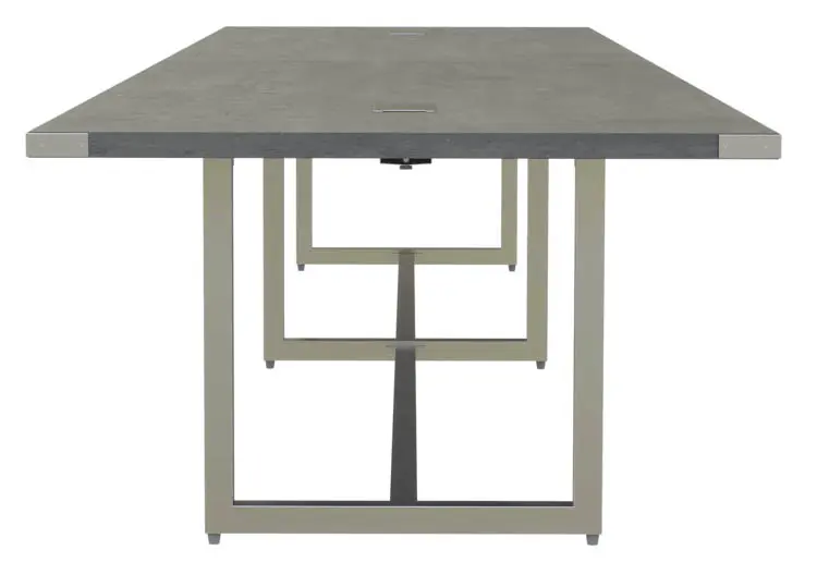 Mirella™ Conference Table, Sitting-Height, 16’ features a contemporary design that provides a residential look, complemented with Brushed-Silver or Black Powder Coat accents and finishes.