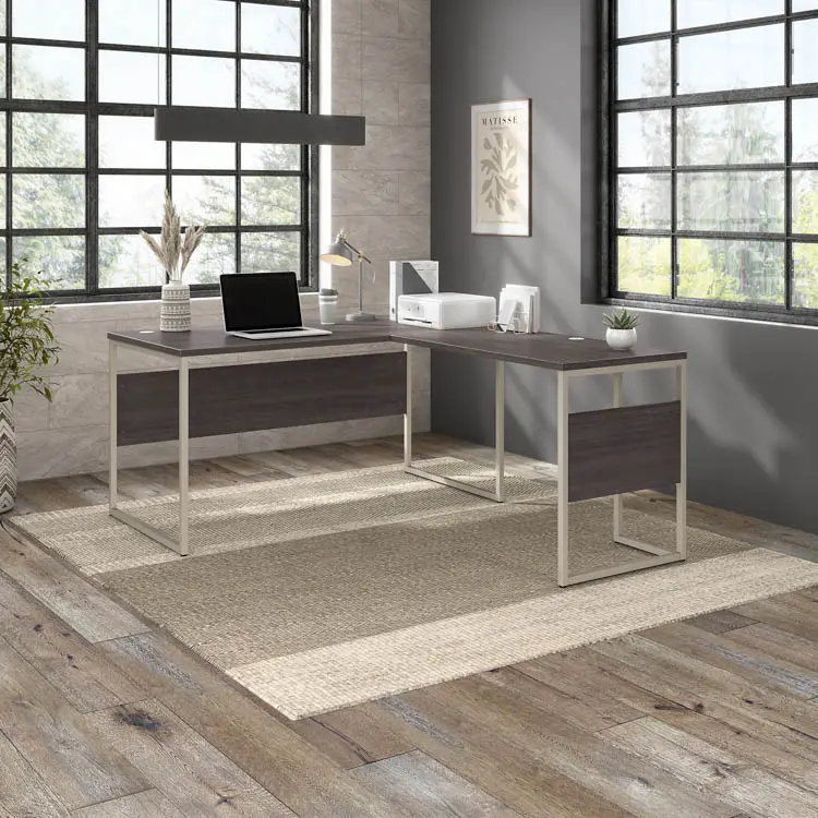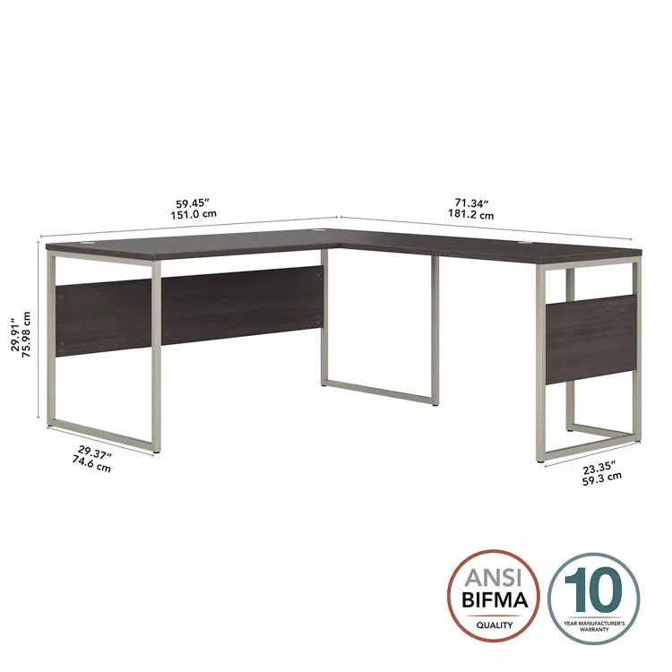 The Bush Business Furniture Hybrid 60" W x 72" D L-Shaped Table Desk blends a durable work surface with sturdy metal legs to offer a stylish, long-lasting solution for the modern professional.