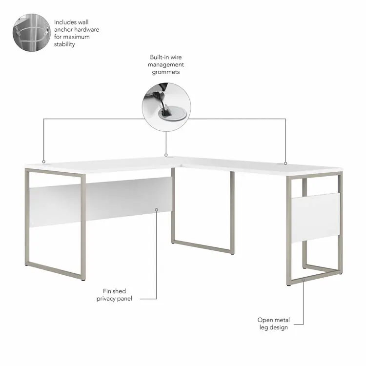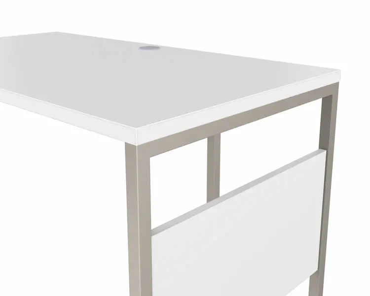 • Open metal leg design and finished privacy panel allow the corner desk to look great facing any direction