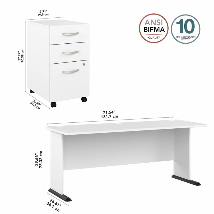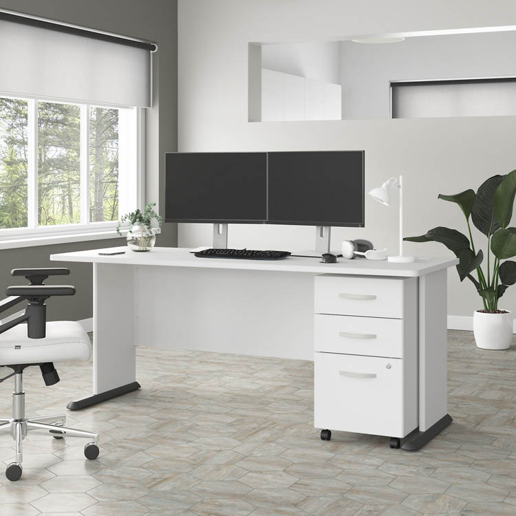 The Bush Business Furniture Studio A 72" W Computer Desk with Assembled 3 Drawer Mobile File Cabinet combines a fresh, contemporary appearance with the commercial quality construction needed to withstand years of everyday use.