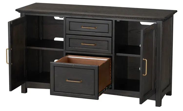 • 54" W Credenza with FSC certified American red oak veneer, oak solids, and engineered wood
