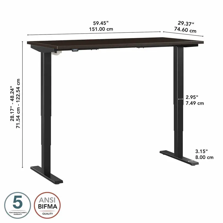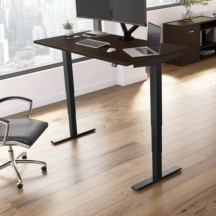 • Height Adjustable Standing Desk includes a motorized base and 60" W x 30" D top surface with built-in wire management