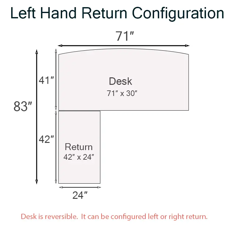 72in x 83in Bow Front Double Pedestal L-Shaped Desk by PBD Furniture