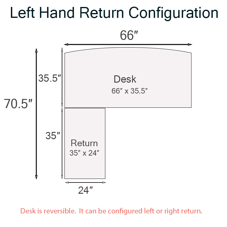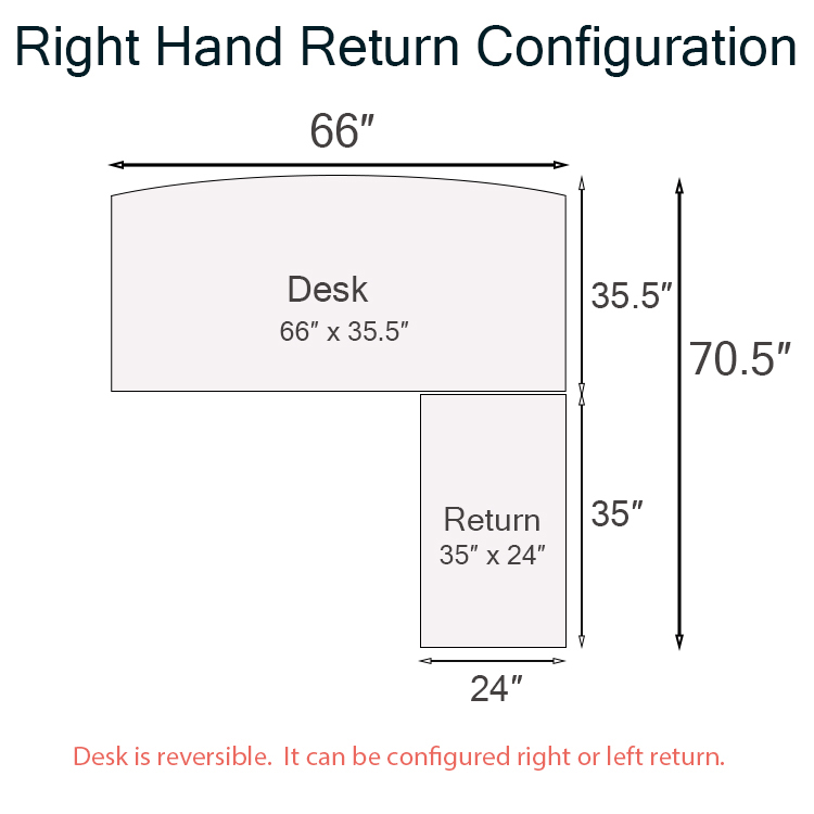 Desk: 66 in W x 35-1/2 in D x 30 in H