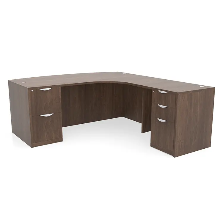 PL Series Curved Corner Bow Front L-Shaped Desk features a durable laminate finish & 3mm edge banding.