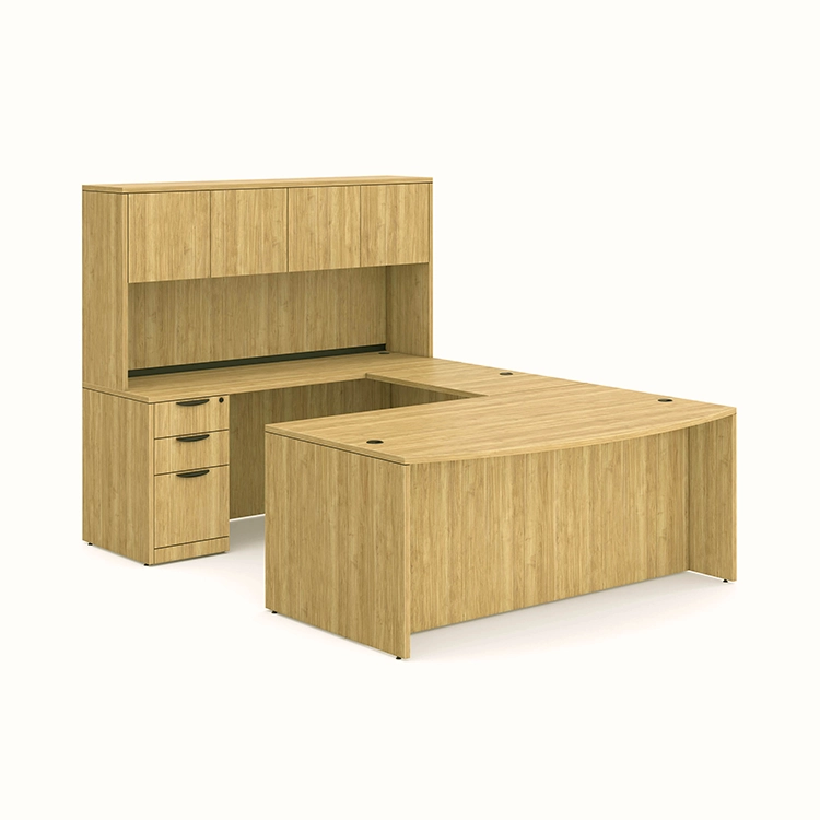 PL Series Curved Corner Bow Front U-Shaped Desk with Hutch features a durable laminate finish & 3mm edge banding.